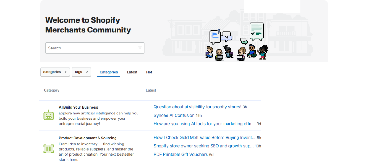 Recommended if: You might want an opinion on something, for instance, which application is best to sync my social networks with Shopify. The experienced forum users will be able to give you some opinionated answers without any bias apart from their experiences. While these offer helpful insights, just keep in mind that any advice may not be up-to-date and isn’t verified by Shopify.